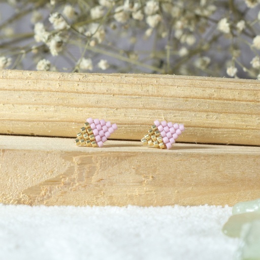 Elevate your everyday elegance with the Blush Pyramid Studs! These beautifully handwoven earrings feature a modern geometric design crafted from delicate, high-quality seed beads. With a soft blush pink top and a shimmering metallic gold base, each triangular stud blends feminine charm with contemporary flair.