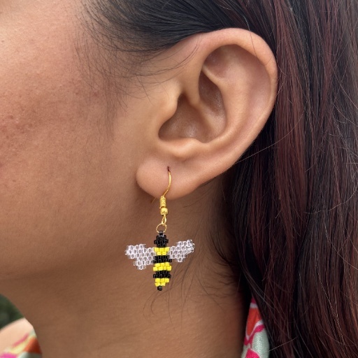 Sweeten your style with the Buzzling Bee Drop — a delightful earring that brings charm, cheer, and a touch of nature to your look. Crafted with intricate beadwork, this adorable design features a bright yellow and black bee with shimmering translucent wings, perfectly suspended from a gold-tone hook. Lightweight and full of personality, it’s a joyful accessory that celebrates the beauty and buzz of nature. Ideal for spring outfits, garden lovers, or anyone who loves to stand out with a little buzz.