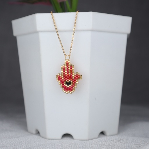 Radiating love, luck, and style, the Charmé Rouge Set blends playful passion with symbolic strength. The centerpiece is a red beaded Hamsa hand pendant—a symbol of protection—accented with a small black evil-eye motif and bordered in gleaming gold. Matching heart-shaped stud earrings complete the set with a touch of romantic charm.