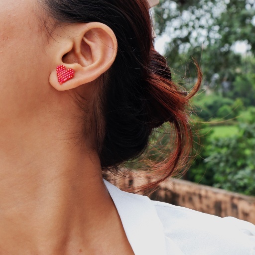 • Dainty heart-shaped red earrings for a youthful, romantic accent