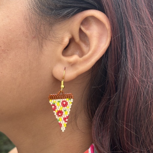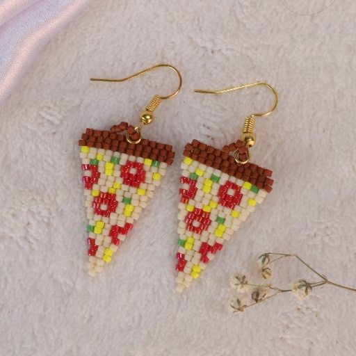 Add a slice of fun to your look with the Cheesy Delight Beaded Earring! Handcrafted with vibrant seed beads, this earring mimics a delicious slice of pizza topped with colorful “toppings” like red pepperoni and golden cheese. The triangular shape and intricate beadwork give it a quirky yet detailed aesthetic, perfect for food lovers and playful fashionistas. Lightweight and eye-catching, it’s a charming accessory to spice up casual outfits or add a dash of whimsy to your day.