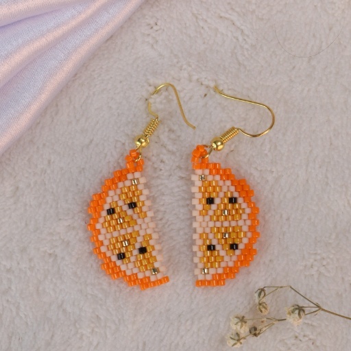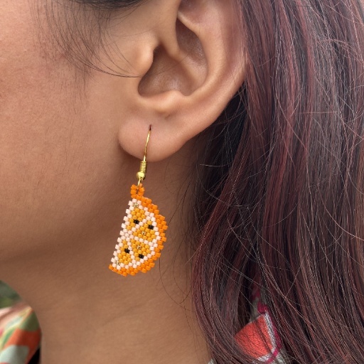 Add a zesty twist to your style with the Citrus Slice Beaded Earring! Handcrafted with vibrant orange, white, and yellow seed beads, this playful piece mimics a juicy citrus wedge—full of color and charm. Lightweight and eye-catching, it’s the perfect accessory for sunny days, tropical vacations, or anyone who loves fruity, fun jewelry.