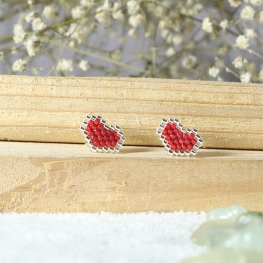 Materials: Glass seed beads (red & silver), hypoallergenic studs