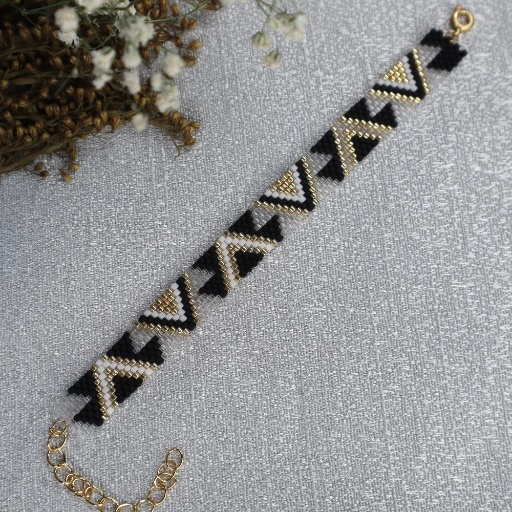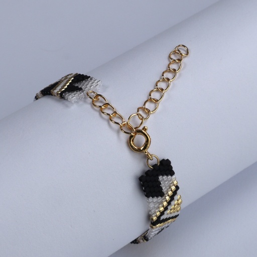 The Edgy Elegance Bracelet blends sleek structure with striking style. Featuring a sharp black and gold grid pattern in a handwoven band, it’s the perfect balance of modern minimalism and fierce sophistication.
