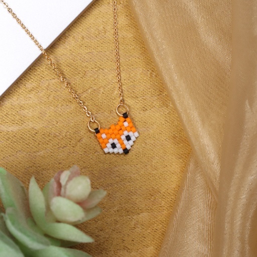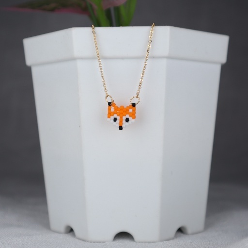 Whimsical and full of charm, the Fable Fox Beaded Necklace brings a playful spirit to your jewelry collection. Handwoven with vibrant orange, white, and black beads, this adorable fox face pendant captures the clever and curious nature of the forest’s most iconic trickster. Set on a fine gold-toned chain, it’s the perfect piece to spark conversation and celebrate your inner wild.