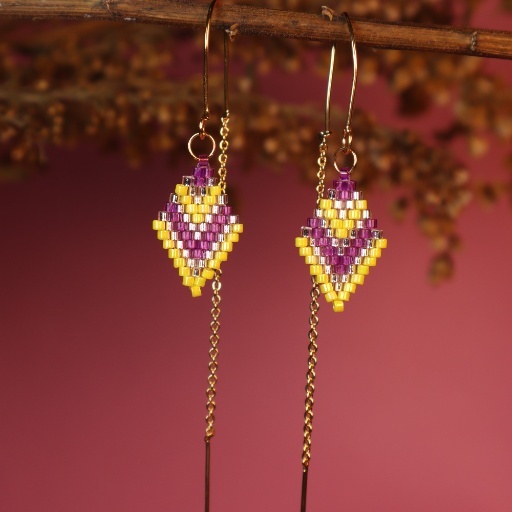 Bold handwoven diamond beadwork in yellow, lavender & white