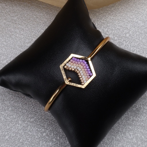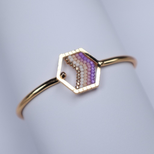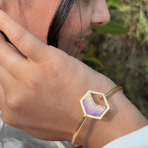 A bold statement for the visionary soul, the North Hex Cuff stands as a signature piece that merges precision, purpose, and poise. Centered by a sleek hexagonal frame, this bracelet features a handwoven mosaic in gradients of violet, cream, and gold — evoking a sense of movement and intentional direction.