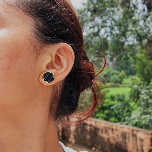 Elegant and geometric, the Midnight Hive Set channels bold sophistication with a modern edge. Crafted with rich black and metallic gold beads, the hexagonal design mimics a honeycomb structure, creating a statement that’s as structured as it is stylish.