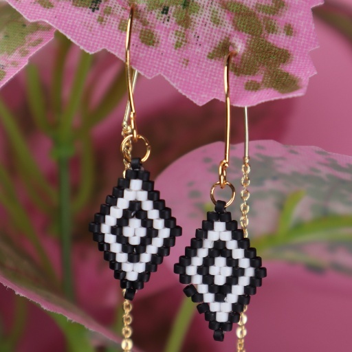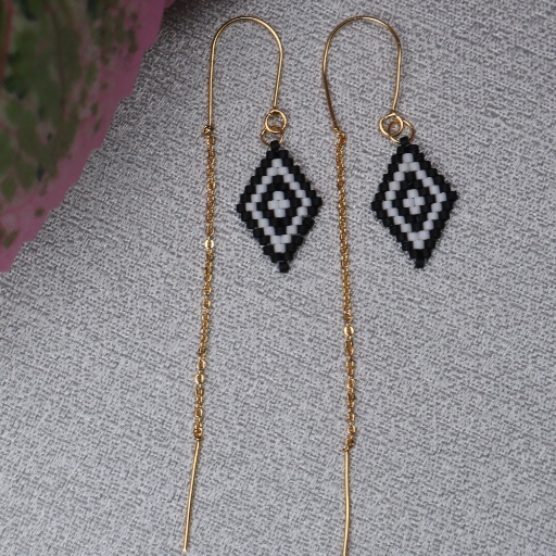 Elegant and effortlessly chic, the Monochrome Diamond Threader Earring is a timeless piece for every wardrobe. Featuring a handwoven black-and-white diamond pattern, this earring offers a bold contrast with minimalist charm. The sleek gold-plated threader chain adds modern elegance and gentle movement, making it ideal for both casual wear and formal occasions. Sophisticated, lightweight, and versatile — it’s a statement in simplicity.
