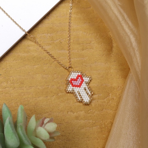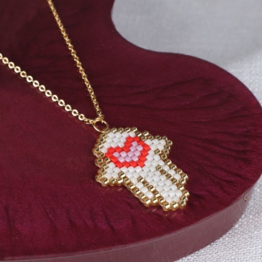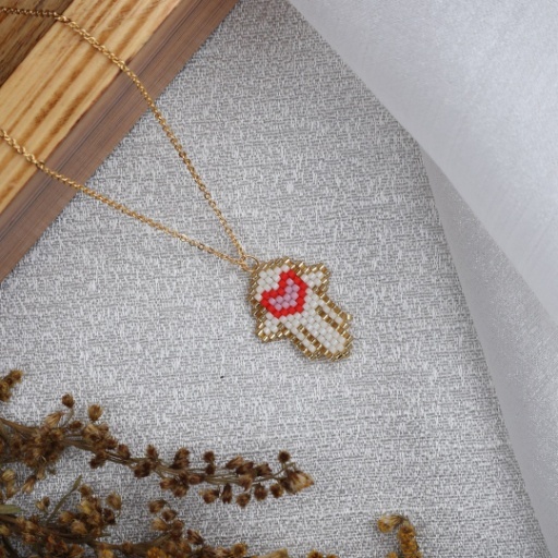 The Palmeta Beaded Necklace is a delicate expression of warmth and strength. With a handcrafted beaded pendant shaped like an open hand cradling a heart, it beautifully symbolizes compassion, protection, and connection.