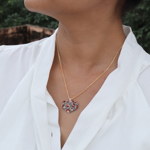 Bold, geometric, and full of heartfelt charm, the Pixel Heart Necklace is a modern tribute to love in its most playful form. Carefully handwoven with precision-cut beads in shades of gray, red, and soft metallics, the heart-shaped pendant mimics classic pixel art — bringing a touch of retro flair to any outfit.