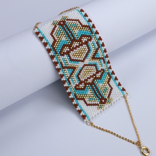 Colors: Rust brown, turquoise, white & gold